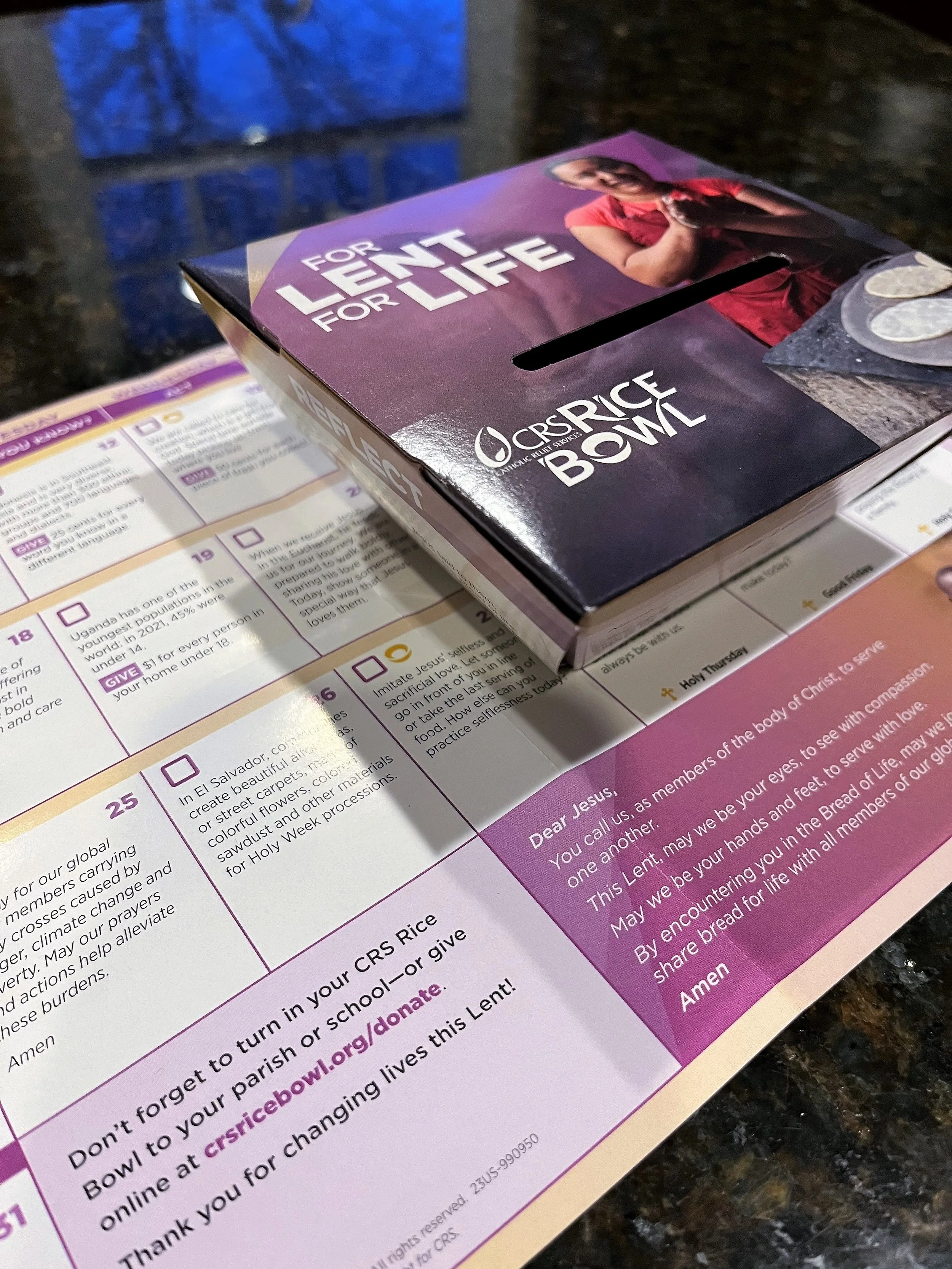 As you exit Mass this weekend, take a new Rice Bowl for your family. There's a wonderful calendar that shares reflections, intentions, and stories for each day of Lent. Rekindle or start a very basic, yet important tradition with your family this year.